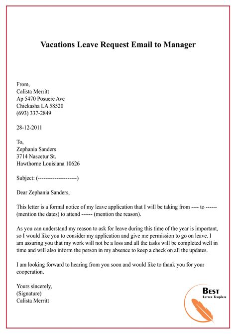 How to Write a Vacation Request Email or Leave of Absence from influno.com